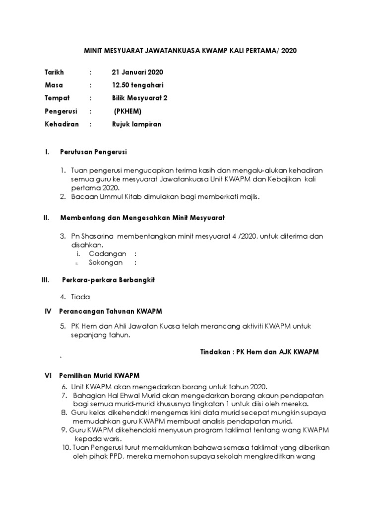 Contoh Minit Mesyuarat Kwamp 2020 Pdf